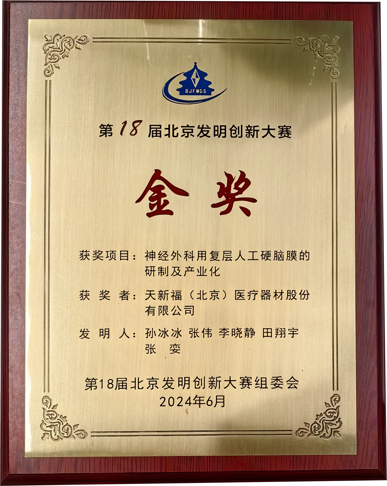 近日,由北京發(fā)明協(xié)會(huì)主辦的第18屆北京發(fā)明創(chuàng)新大賽頒獎(jiǎng)會(huì)在湖北大廈召開,天新福(北京)醫(yī)療器材股份有限公司申報(bào)的《神經(jīng)外科用復(fù)層人工硬腦膜的研制及產(chǎn)業(yè)化》項(xiàng)目榮獲“第18屆北京發(fā)明創(chuàng)新大賽金獎(jiǎng)”。