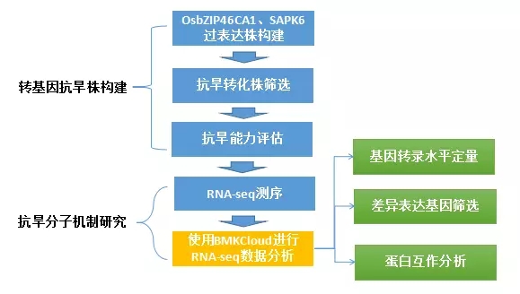 植物抗旱研究的老師看過來了,近期華中農(nóng)業(yè)大學(xué)水稻研究團(tuán)隊成功構(gòu)建水稻雙基因轉(zhuǎn)化抗旱株,并借助百邁客云計算平臺(www.orientmoon.cn)挖掘該抗旱株轉(zhuǎn)錄組測序數(shù)據(jù),完成對該新型水稻抗旱株抗旱機(jī)制初步探究。